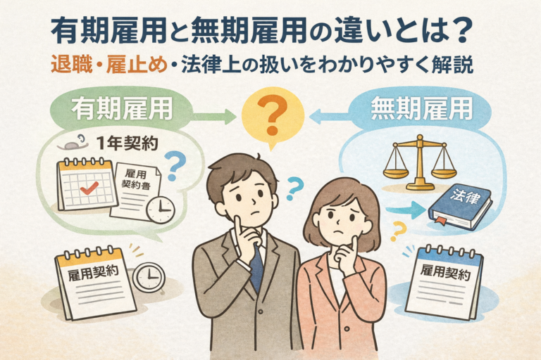 本記事では、「有期雇用と無期雇用の違いとは?法律上の扱いをわかりやすく解説」と題して解説しました。